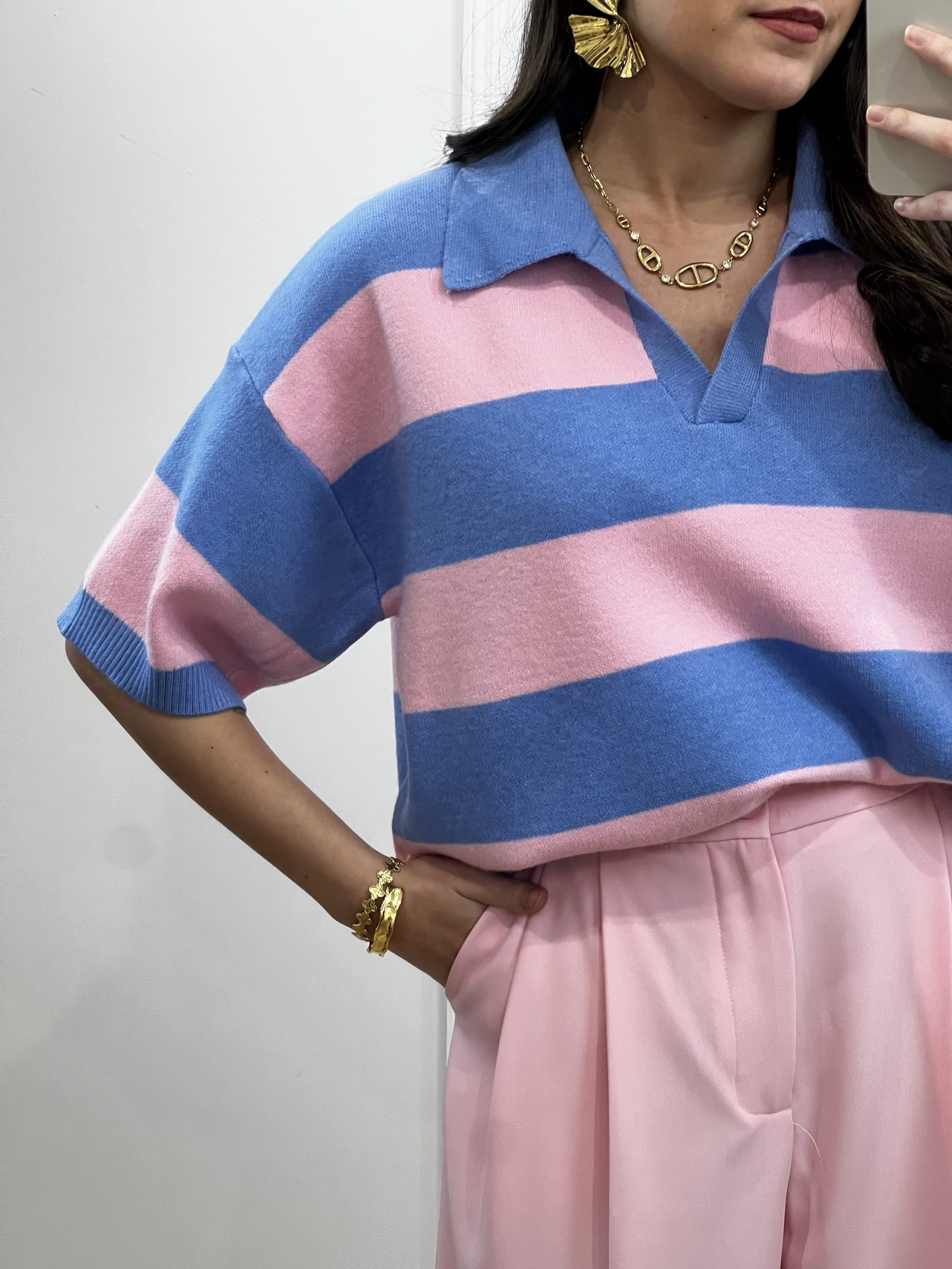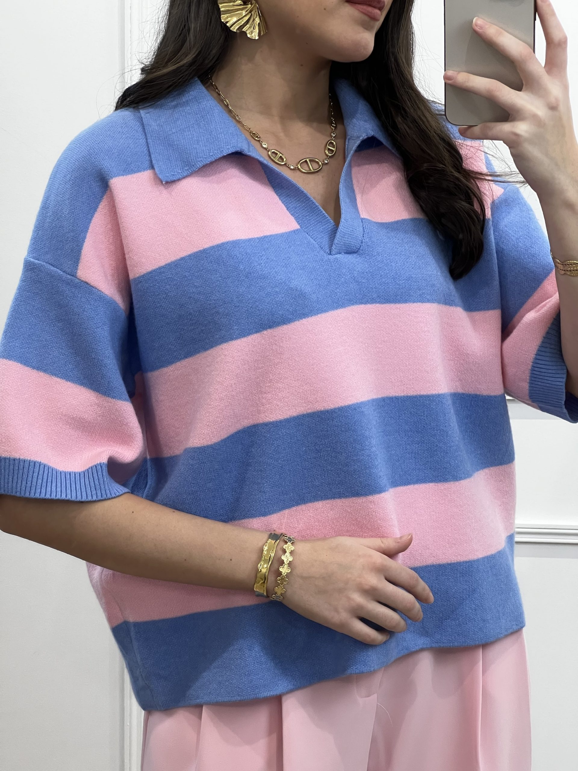 Pull rayé rose et bleu