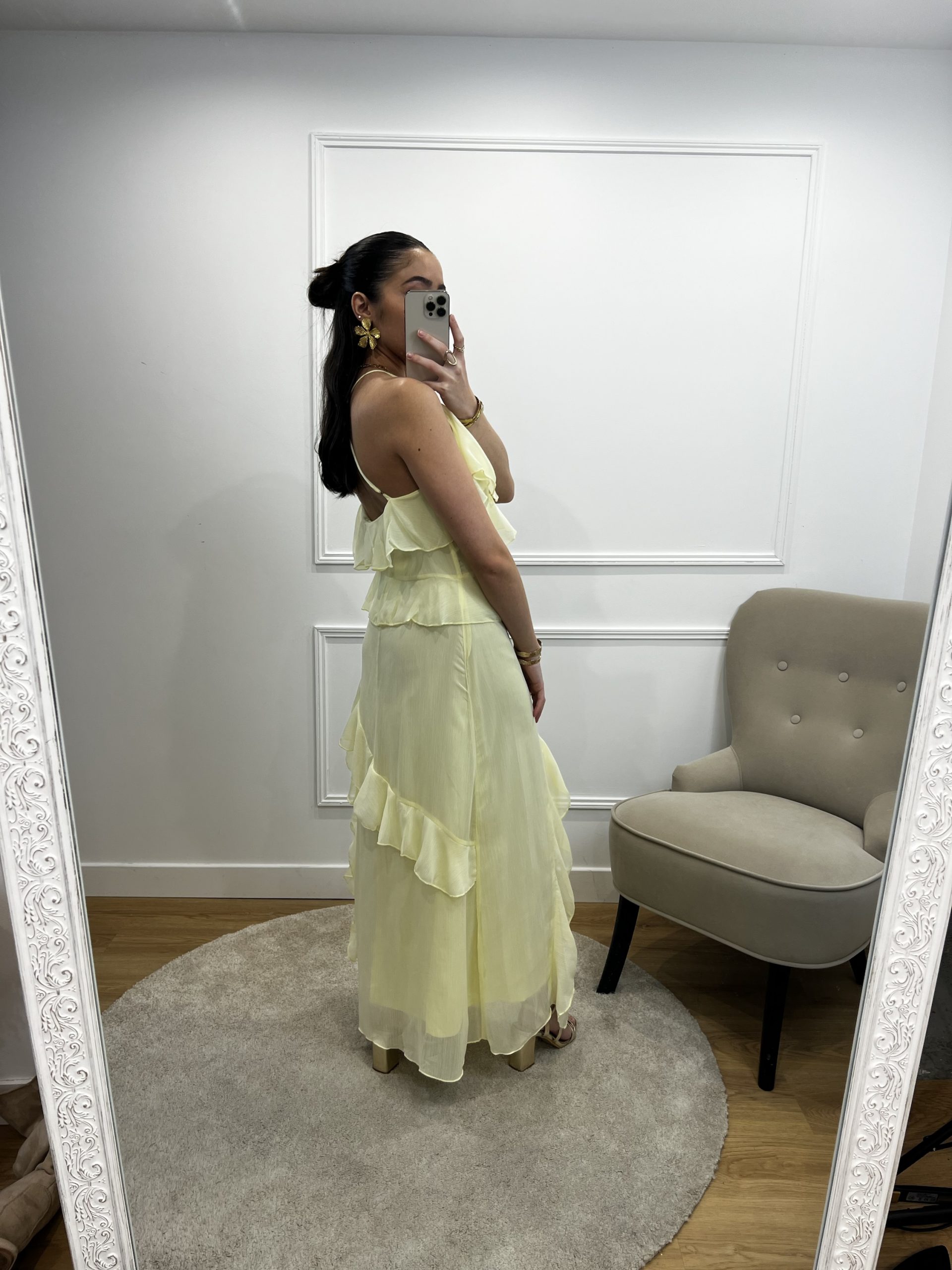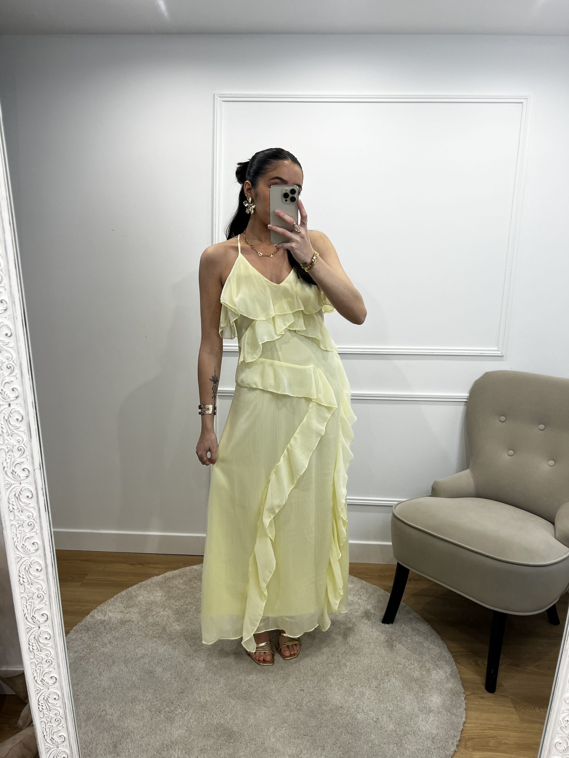 Robe longue jaune à volant